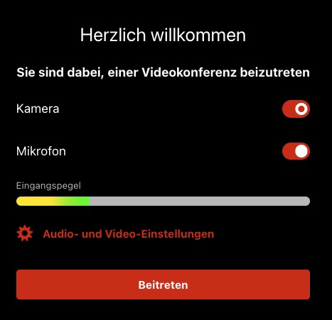 | Navigation per Tastatur | Fokussteuerung per Tab-Taste, Bedienung im Betreten-Dialog und in der Session möglich. Zusätzlich Shortcuts in der Session für die Mikrofon und Kamera Steuerung. | Alle Funktionen müssen über die Tastatur erreichbar sein. |
